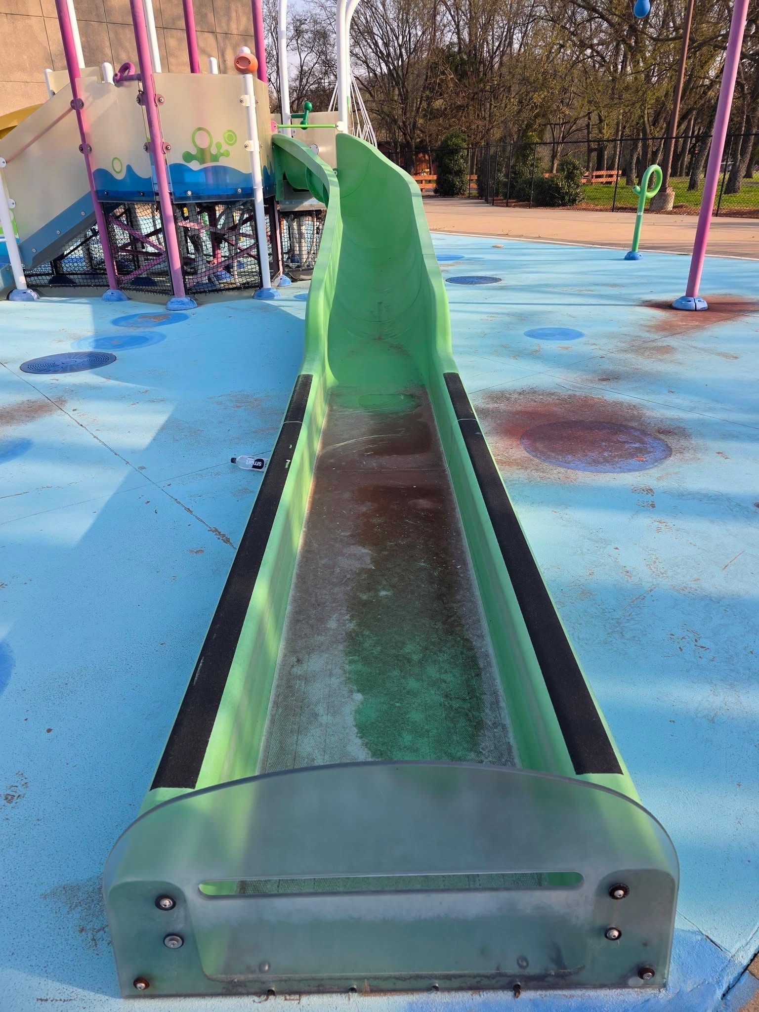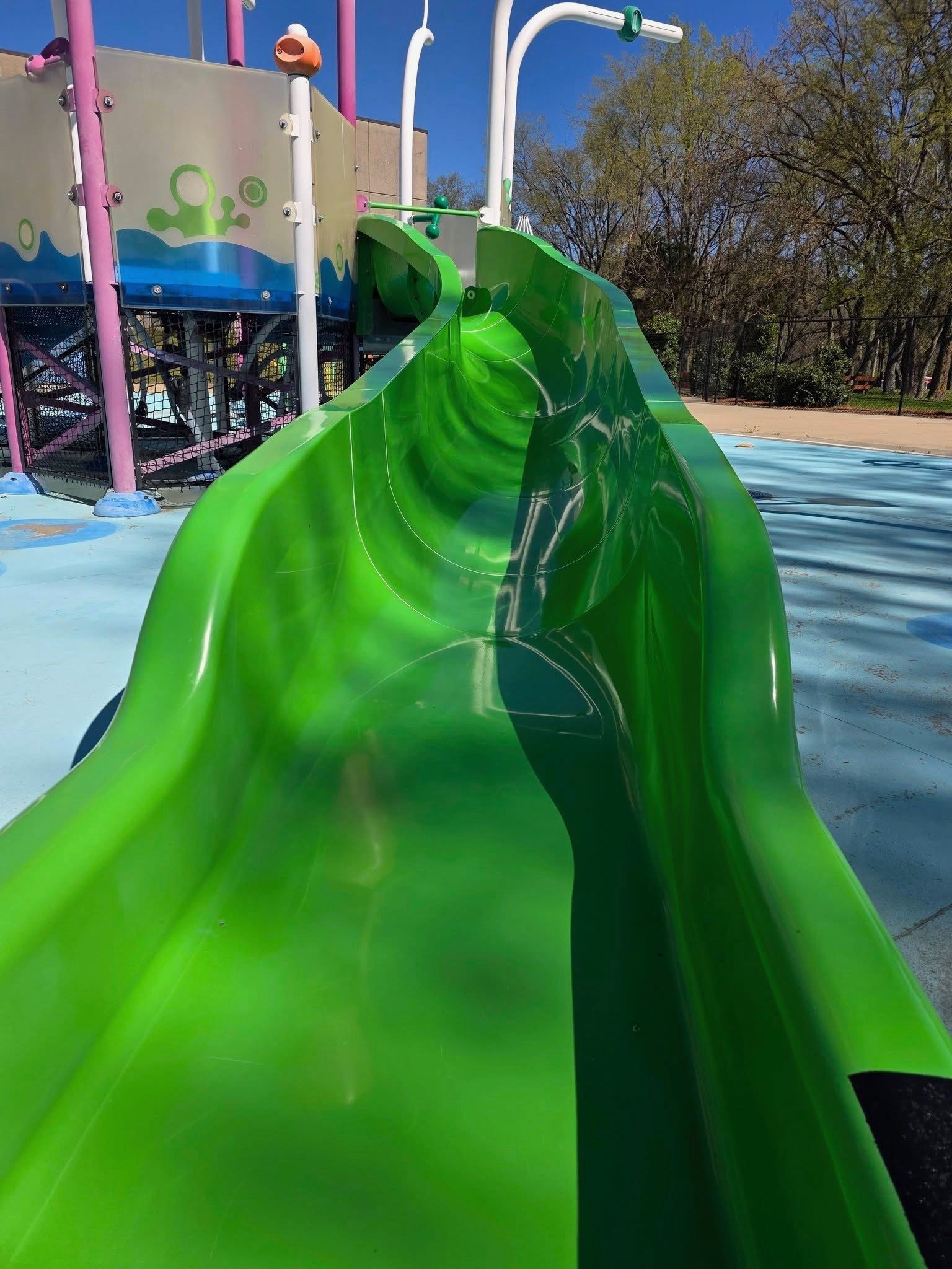 The slides at Franklin Rec Center were fully restored to a like-new condition inside and out. The exterior finish is protected by marine-grade coating that will hold its gloss and color for over a decade. The interior ride surfaces were brought back to factory quality through wet sanding and polishing alone, proving that a full respray is not always the answer.