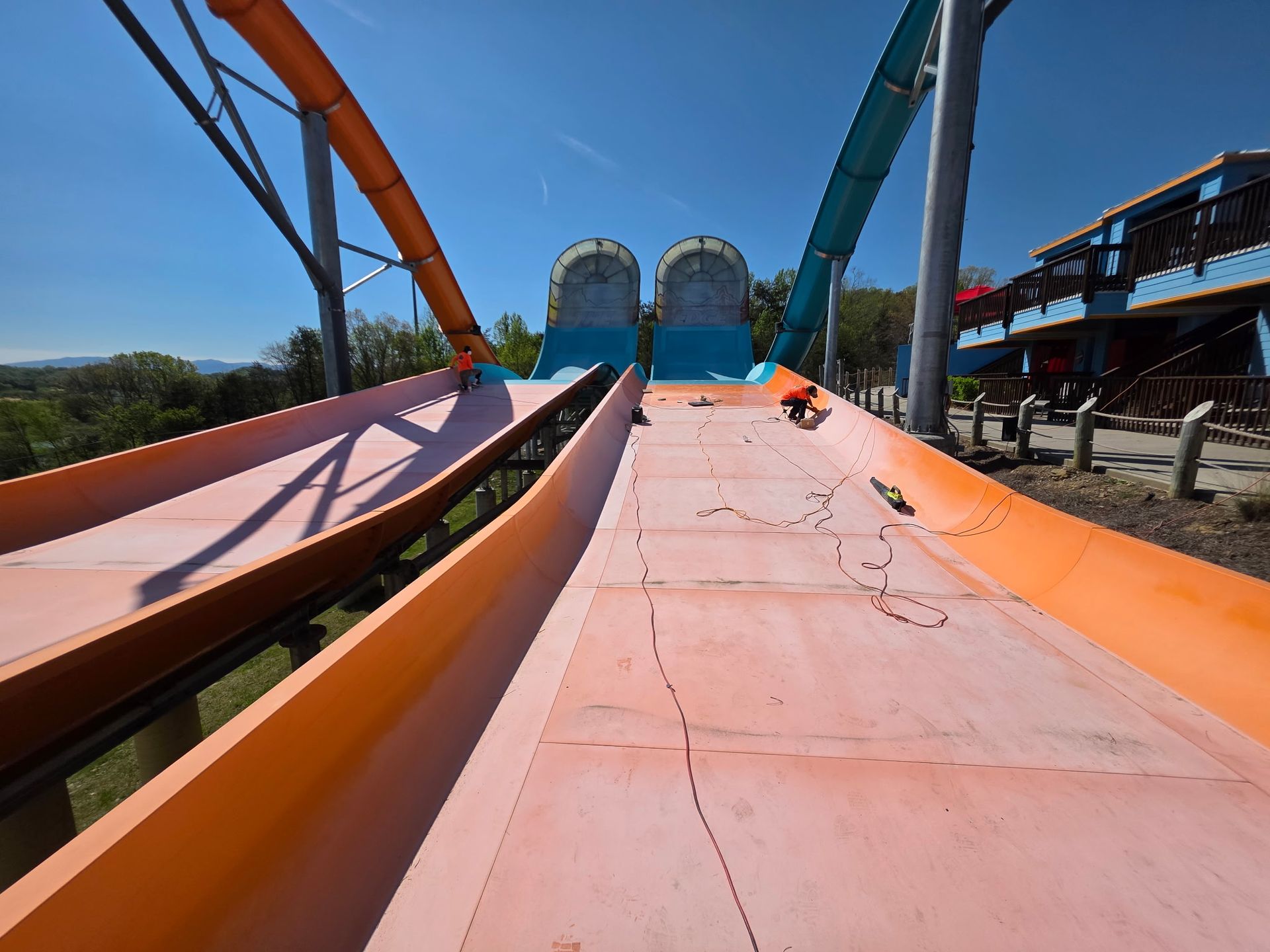 When Soaky Mountain Waterpark reached out, they needed their most prominent attraction restored before the season reopened. This slide is the centerpiece of the park — a massive structure visible from the road that signals to every passing car that the park is there. After being let down by multiple contractors who failed to deliver quality results, the park had almost lost faith that anyone could bring their flagship ride back to life. They needed a team that could arrive fast, assess the damage honestly, and deliver real results within a tight reopening window.